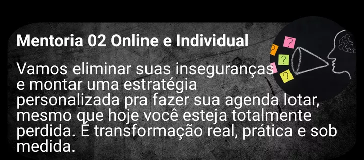 Garantia de 40 dias: assista às aulas, aplique tudo, tire dúvidas nas mentorias. Se você não aprender, comprovar que aplicou o plano de ação na íntegra e mesmo assim não obteve resultado, é só entrar em contato pelo WhatsApp, que vamos agendar uma nova mentoria. Ainda não deu certo?